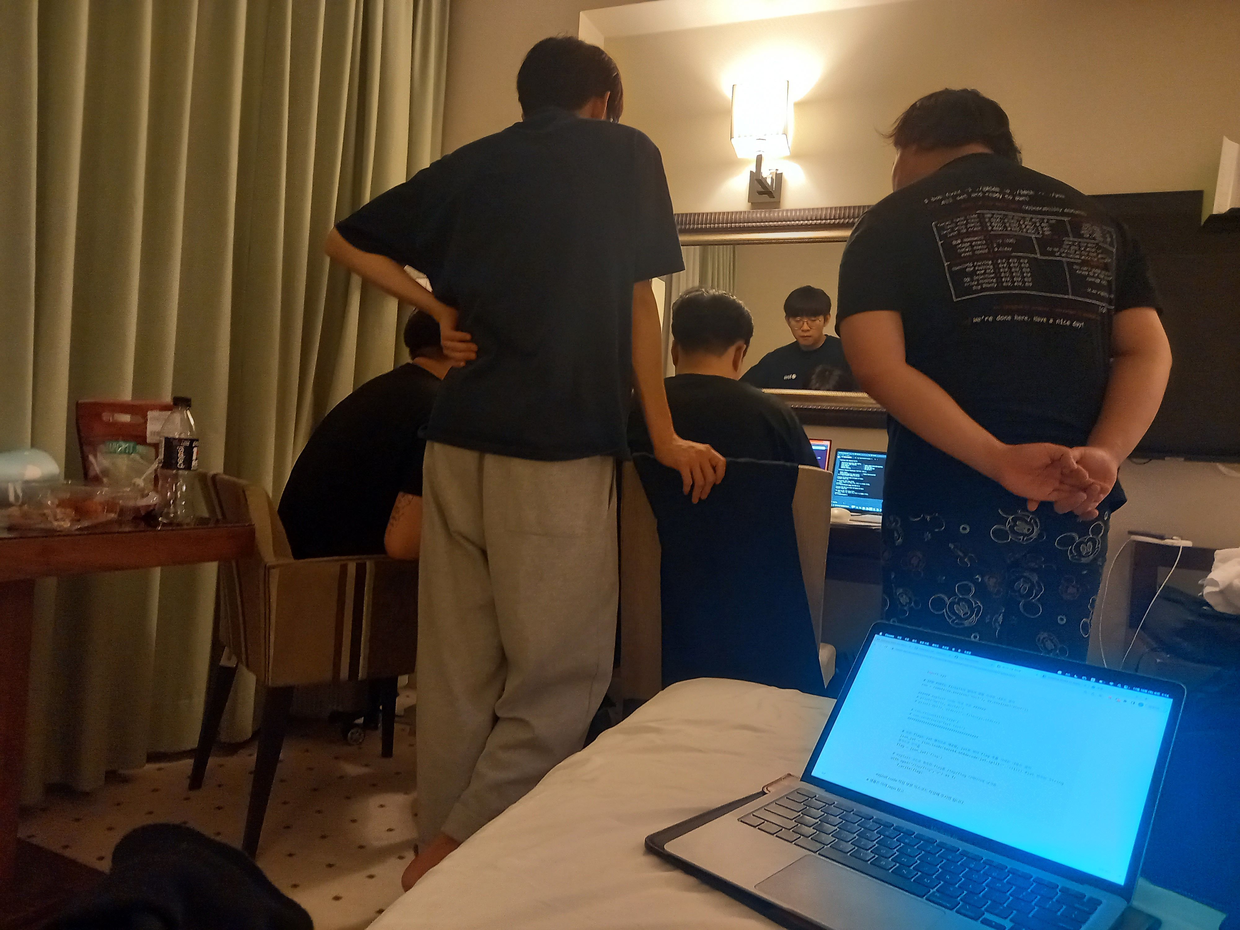 다들 최선을 다해 잠까지 줄여가며 테스트 까지 모두 마친 후. 최종 테스트까지 모두 마쳤을 때, 시간은 벌써 오전 6시, 대회 시작은 오전 10시…