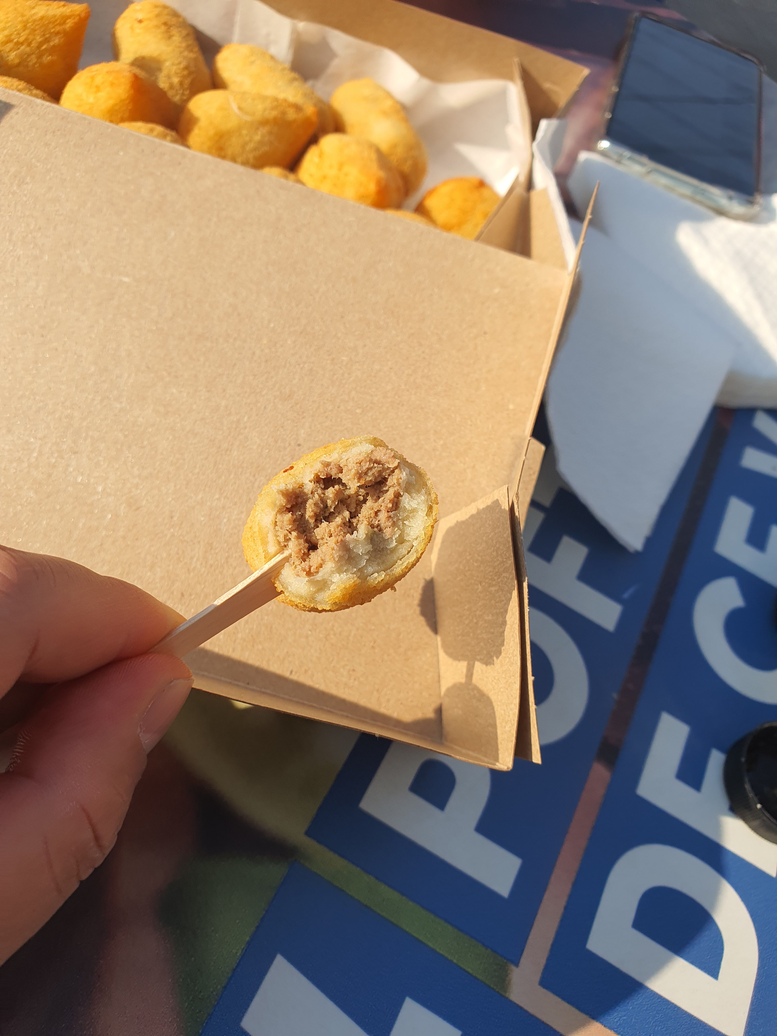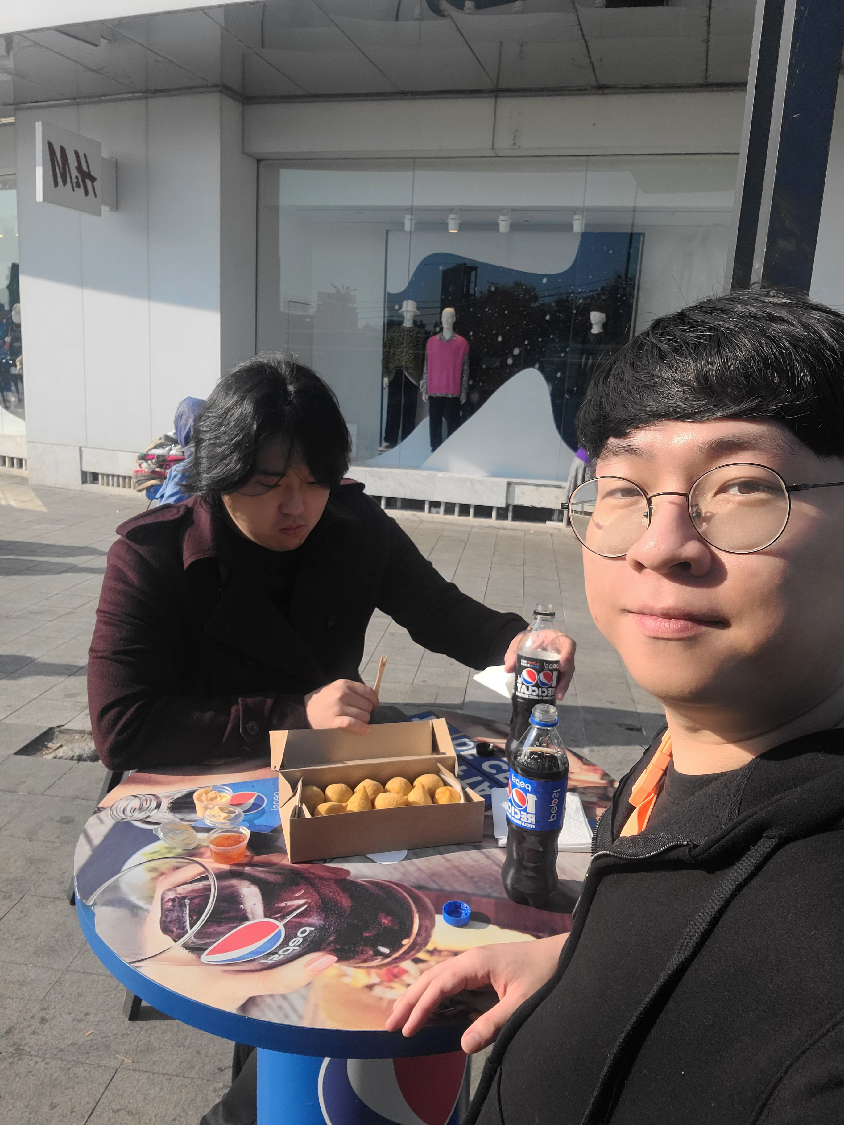 음식을 구매하면서 사장님과 영어로 대화가 잘 안되는 바람에 급하게 구글 번역기를 켜고 손짓과 몸짓을 동원해서 어렵게 구매에 성공했다. 튀김은 닭가슴살, 소고기, 치즈 맛이 있었는데, 맛은 있었지만, 3개정도 먹으니 슬슬 배가 불렀다.