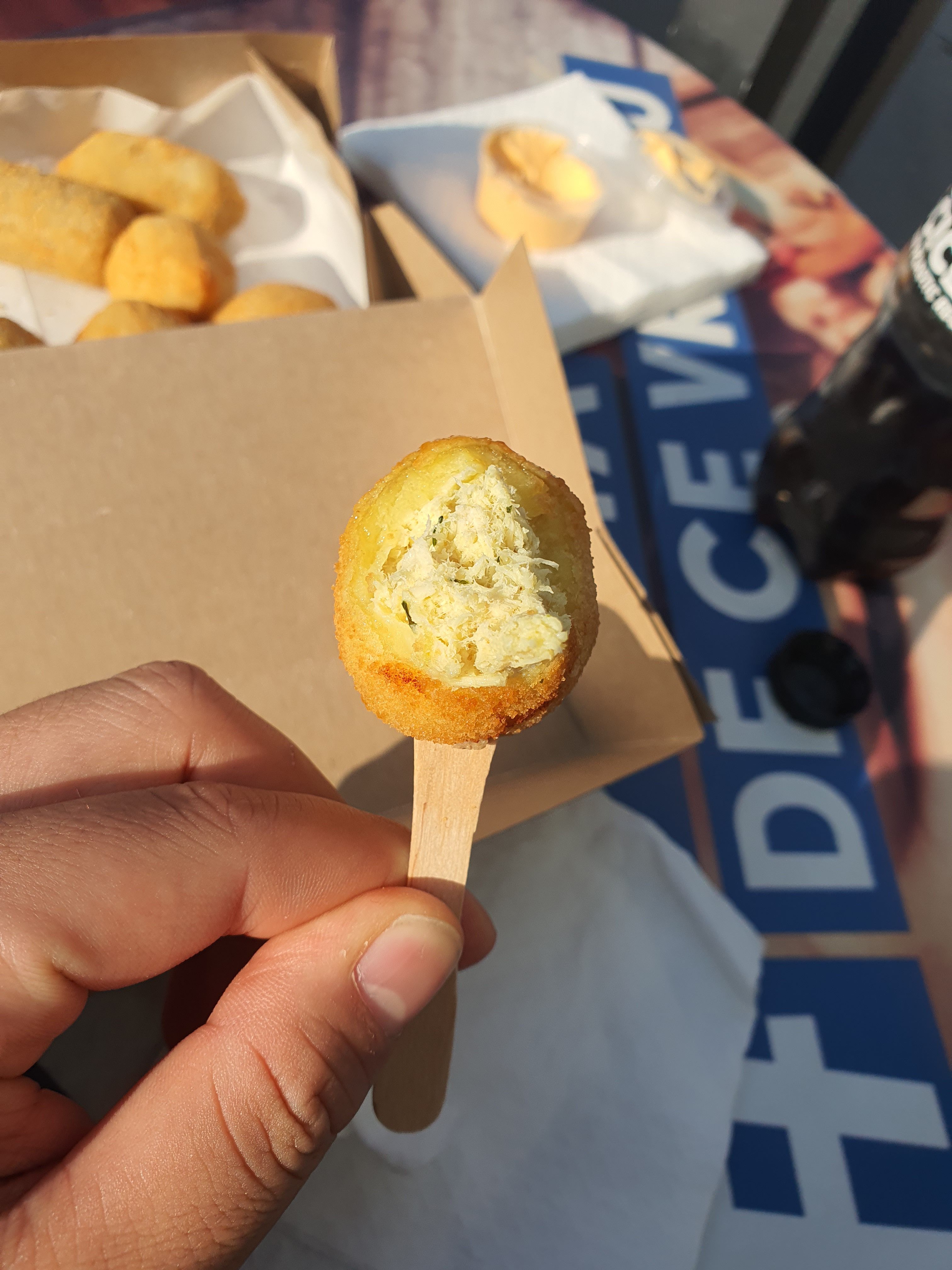 주요 관광지를 쓱 둘러보고 사진도 많이 찍었겠다 슬슬 배도 고프니까 올드타운으로 가자! 하고 다시 무작정 이동을 시작했다. 가장 먼저 보였던 푸드트럭에 튀김을 팔길래 일단 구매해서 먹어봤다.