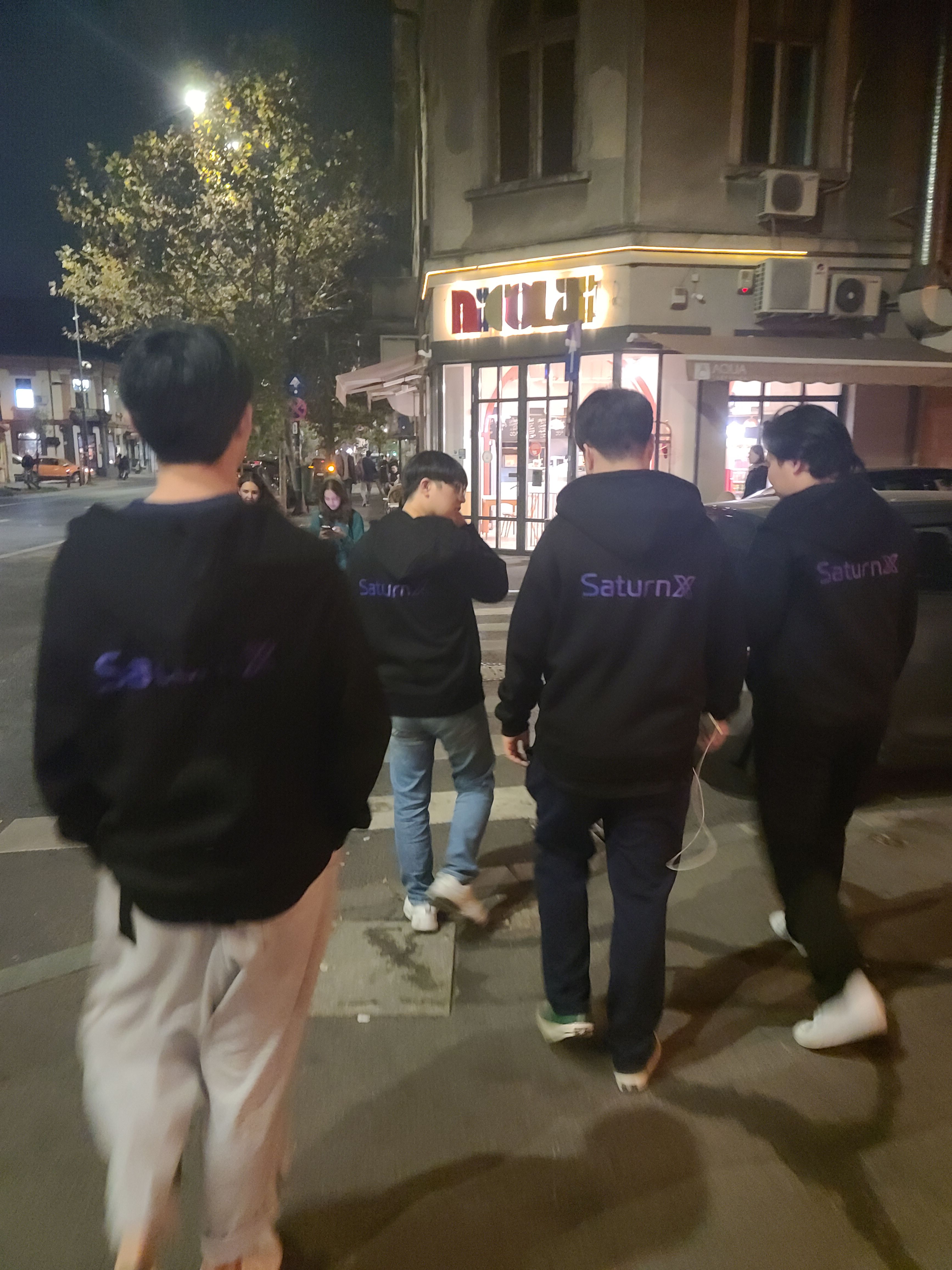 9일 저녁 이탈리아에서 나머지 팀원들인 동석, 성민, 충일이 루마니아에 도착했다. 다같이 팀 후드티를 입고 호텔 1층에서 단체 사진을 찍은 후 맛있는 저녁을 먹으러 출발!