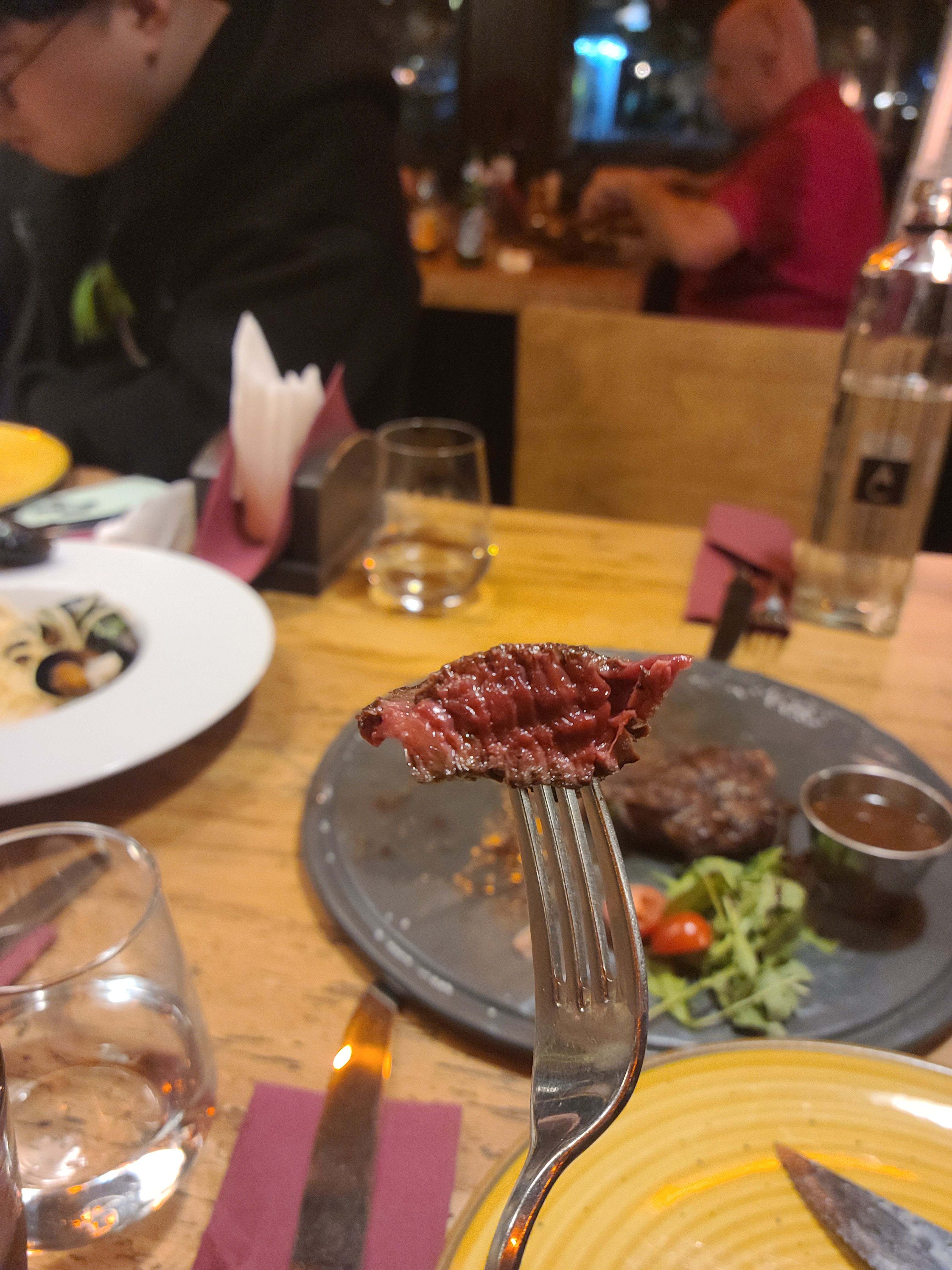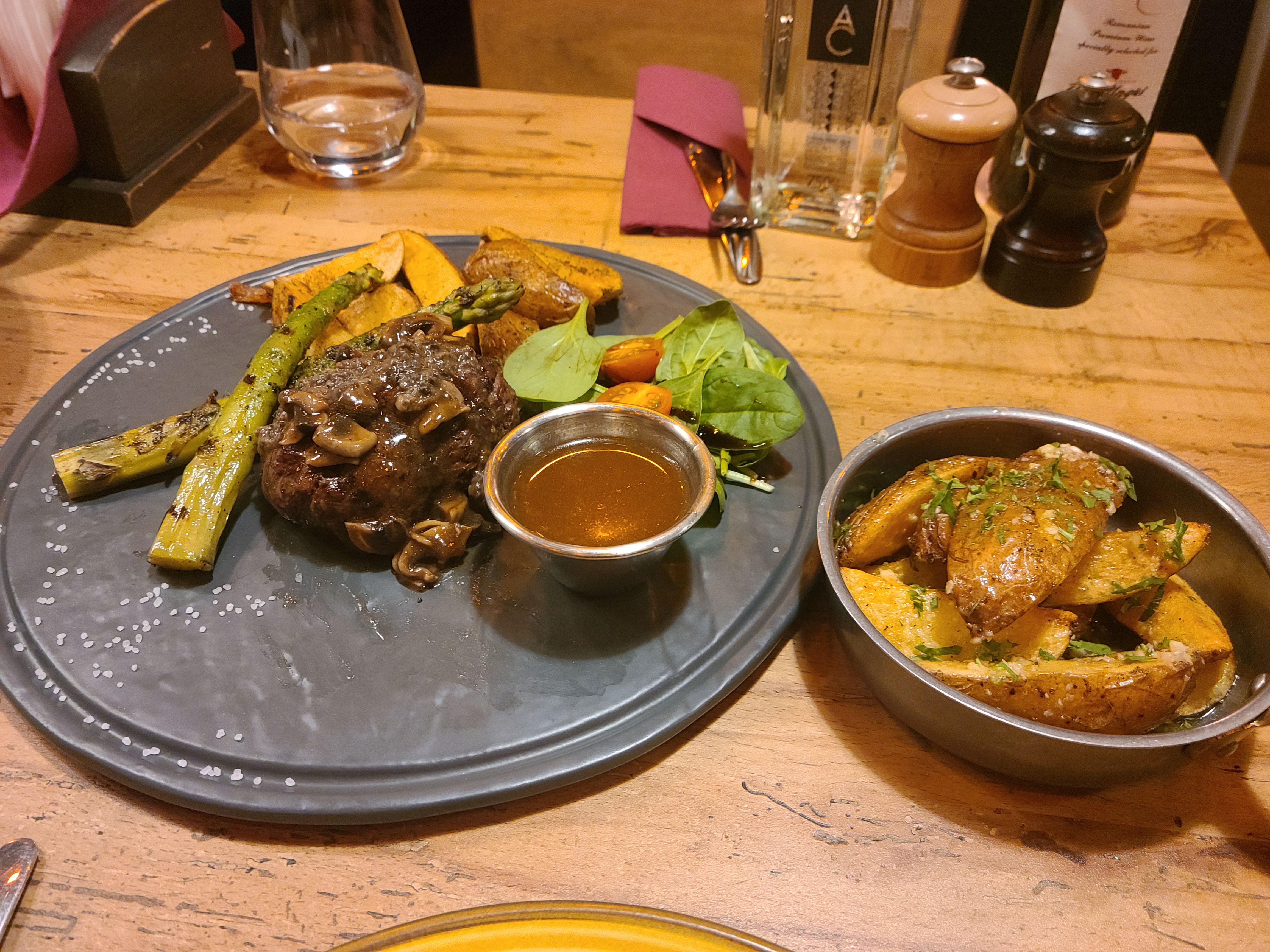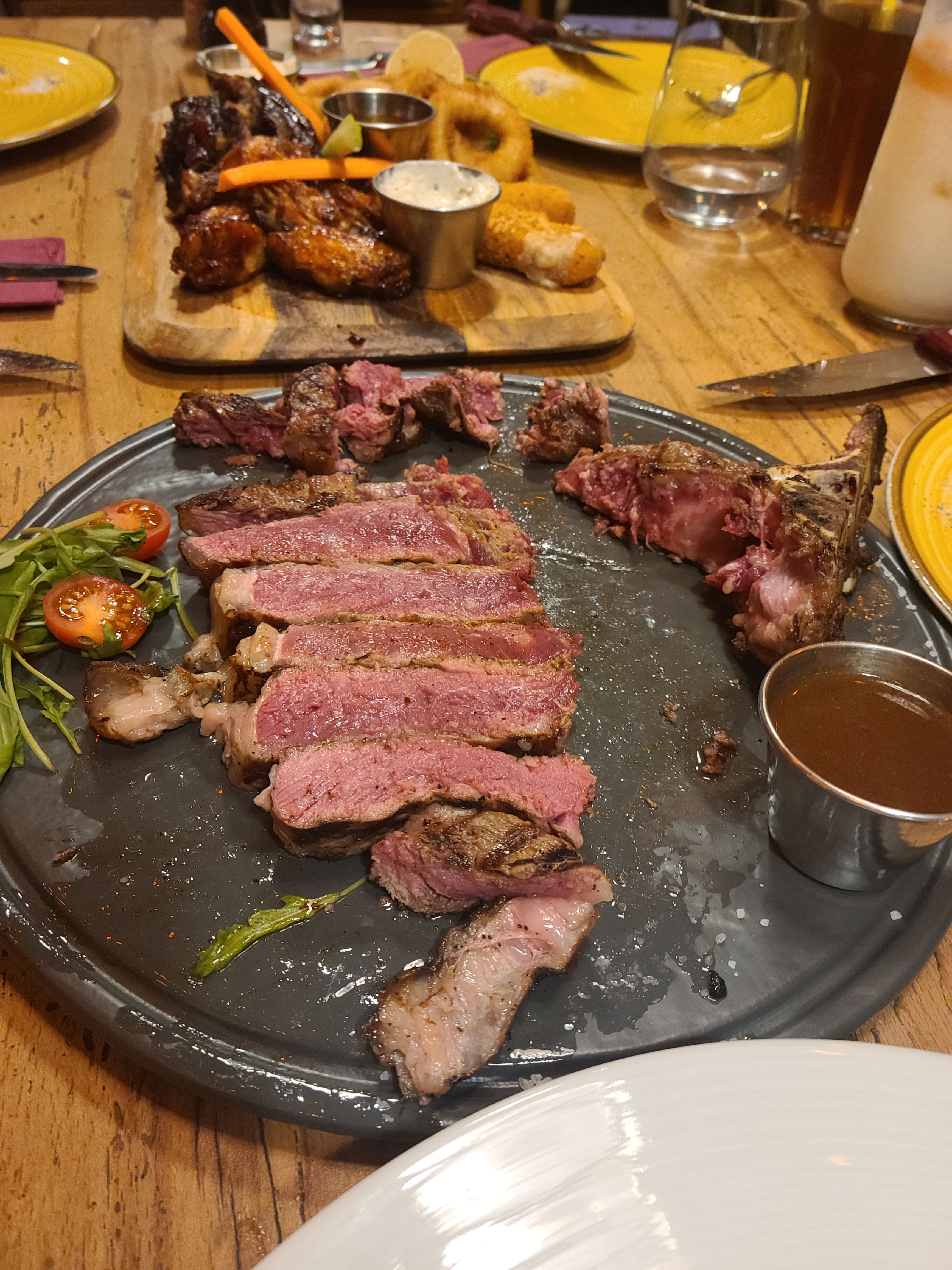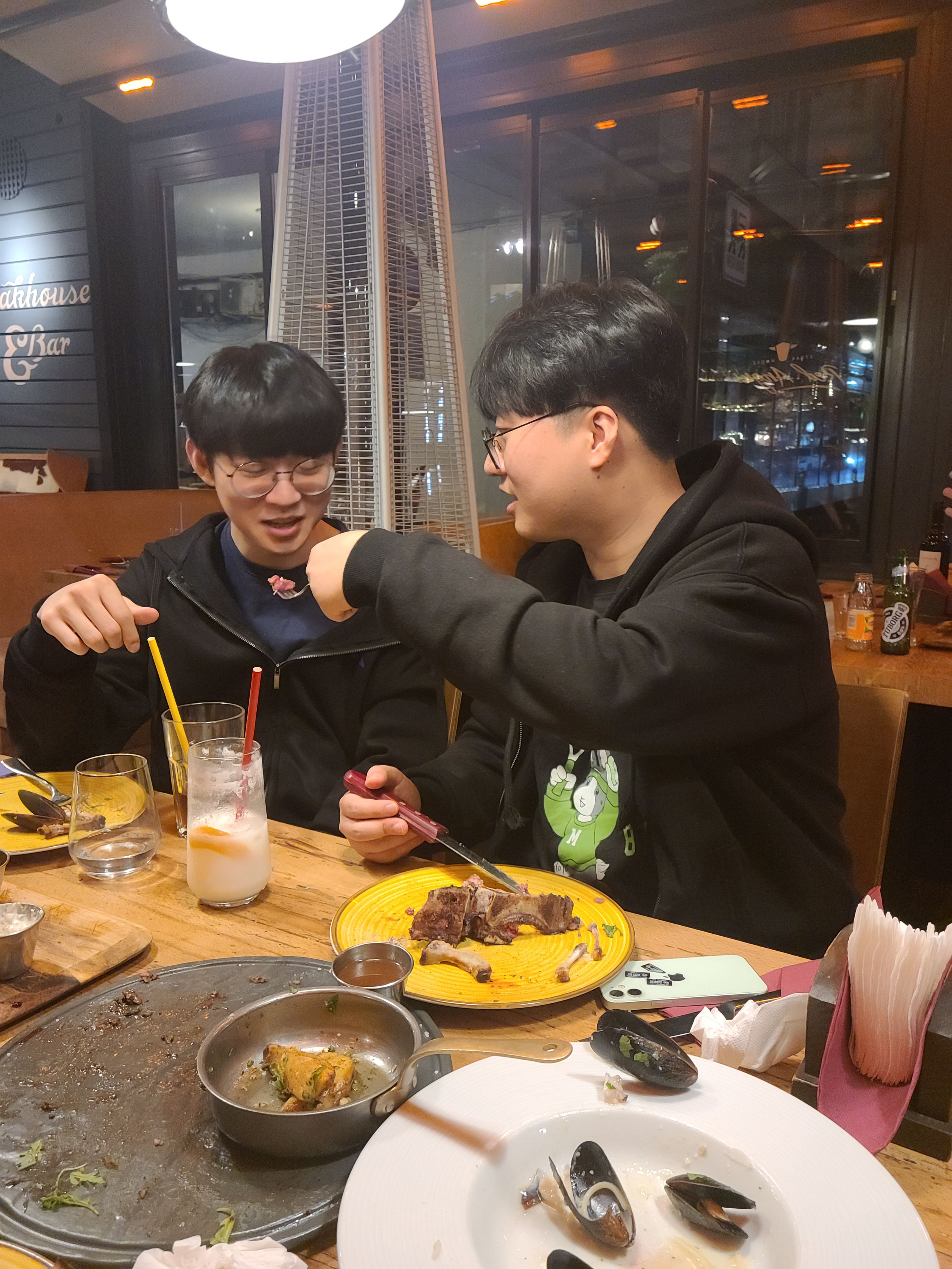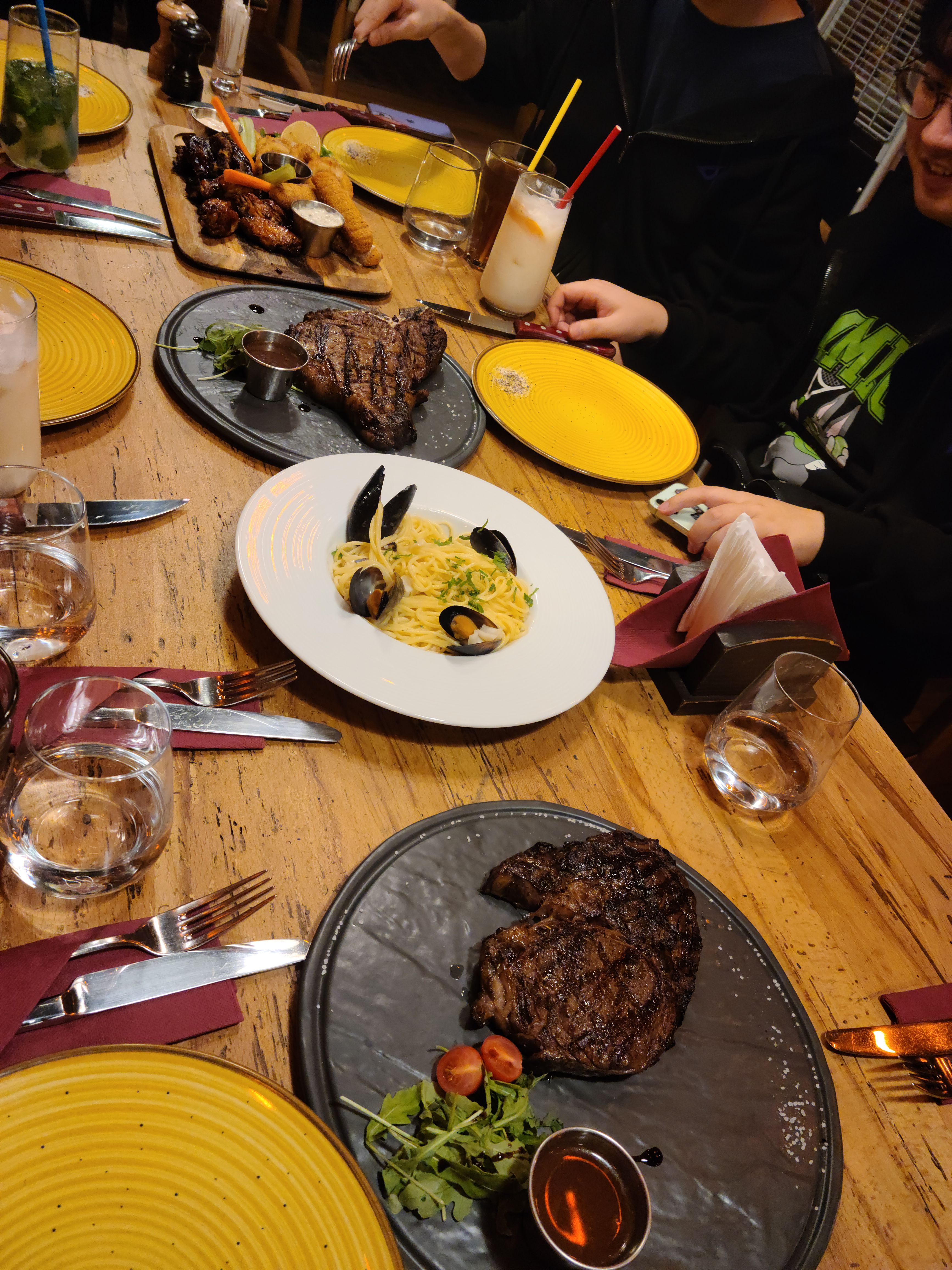 팀원들이 다 같이 모인 기념이자 내일 대회를 잘하자는 의미에서 스테이크를 먹으러 갔다. Red Angus Steakhouse 라는 곳 이었는데, 숙소에서 도보로 약 20분정도 떨어진 곳이었다. 스테이크 3개 파스타, 플래터, 그리고 간단한 칵테일과 함께 즐기는 신나는 시간이었다! 5명이서 배부르게 스테이크를 먹었는데 총 금액은 약 1000레이 정도 나왔다. 다양하게 스테이크를 먹은 것 치고는 생각보다 많이 나오지 않아서 신기했고, 진짜 진짜 맛있었다!!